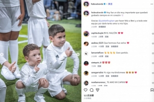 巴尔韦德也在赛后通过社媒晒出自己的两个儿子出任球童的照片,贝林厄姆在赛前仪式环节代为照顾他的大儿子Beni。