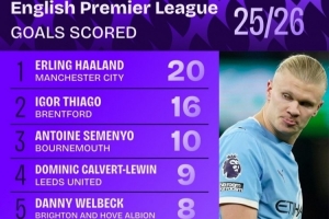 体育资讯1月10日讯 数据机构squawka统计了本赛季英超进球情况,哈兰德压伊戈尔·蒂亚戈居首。